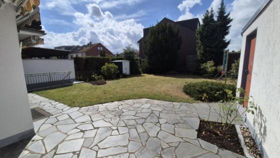 Sowohl von der Küche wie auch vom Wohnzimmer aus gelangen Sie in den großen Garten und auf die Terrasse. Vom Garten aus haben Sie - ebenso wie vom Hauseingang aus - direkten Zugang zur Garage. Große Markisen sorgen für einen angenehmen Aufenthalt auch bei praller Sonne.