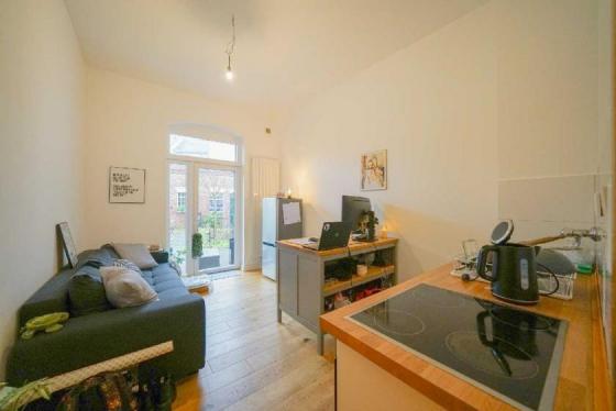 Die im Jahre 2020 frisch kernsanierte Wohnung befindet sich im Hochparterre eines sehr gepflegten Mehrfamilienhauses mit sechs Wohneinheiten. Die Wohnung bietet eine großzügige Wohnküche mit Ausgang zur Terrasse und in den Hof-/Gartenbereich, ein gemütliches Schlafzimmer und eine separate Abstellkammer. Das kleine Duschbad verfügt über ein Hänge-WC, Handtuchhalterheizkörper und einen Waschtisch. Dir Terrasse ist zur ruhigen Hofseite des Hauses gelegen. Zum Angebot gehört ein eigener Kellerraum. Das Fahrrad kann bequem im überdachten Hofbereich geparkt werden.