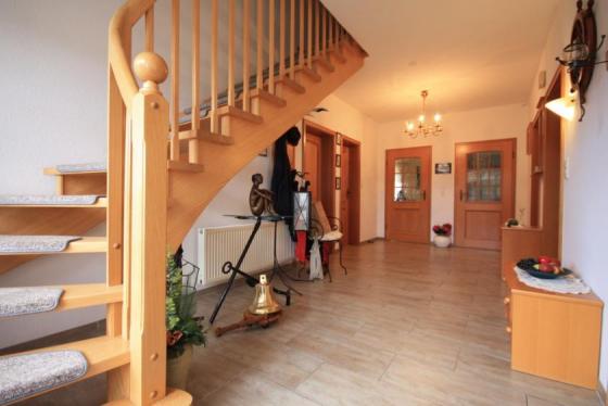 Darüber hinaus verfügt das Haus über einen Hauswirtschaftsraum, der direkt mit der Garage verbunden ist. Von hier aus gelangen Sie bequem ins Haus – praktisch, besonders bei schlechtem Wetter.
