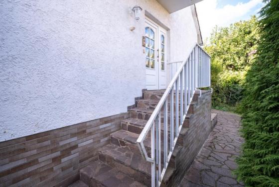 Im Erdgeschoss befindet sich eine Wohnung mit einem offenen Wohn- und Essbereich, der direkten Zugang auf die Terrasse mit Markise ermöglicht. Von hier aus gelangt man in den großen Garten mit Gartenhaus und Pool, der viel Platz zum Entspannen und Gestalten bietet. Ergänzt wird diese Wohneinheit durch eine Küche, ein Tageslicht Badezimmer, zwei Schlafzimmer und ein Gäste-WC sowie einen Flurbereich.