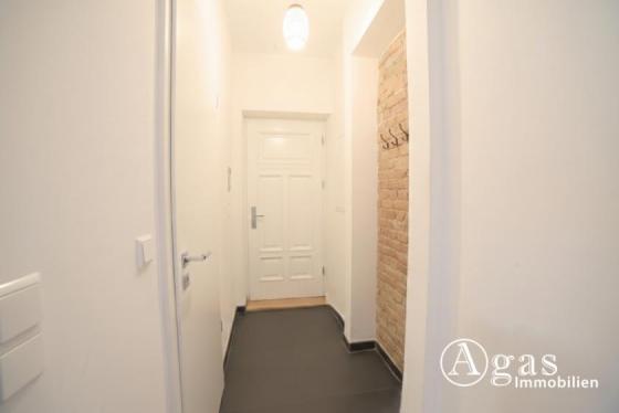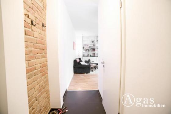 Bereits beim Betreten des Hauses überzeugt der gepflegte Hausflur mit seinem gehobenen Ausstattungsstandard und einer ansprechenden Gestaltung. Die Wohnung selbst empfängt Sie mit einem einladenden Flur, der durch eine Steinmauer auf der linken Seite einen modernen, urbanen Charakter erhält.