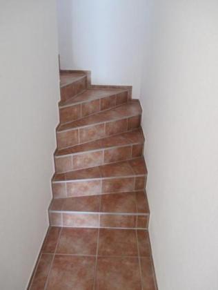 Obergeschoß, Schlfzimmer, Badezimmer mit Dusche, Wanne und Fesnter, hell gefliest, Abstellraum und ein kleiner Flur.