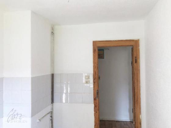 Über den ca. 4,5 m² großen Flur betreten Sie die Wohnung. Von hier aus gelangen Sie in das vollständig geflieste Tageslichtbad, das mit Badewanne, WC und Waschbecken ausgestattet ist. Ebenfalls vom Flur aus erreichbar ist die ca. 6,5 m² große Küche mit praktischem Fliesenspiegel.