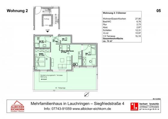 3 Zi. EG mit Terrasse ca. 79 m² - Wohnung 2 - Siegfriedstr. 4, 79787 Lauchringen - Neubau (Wohnungen Lauchringen)