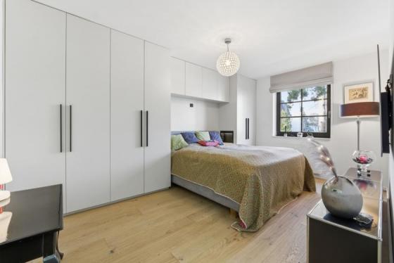 Das Schlafzimmer bietet maßgefertigte Tischlereinbauten mit integrierten Ablagen, Ladefunktion und vom Bett aus bedienbaren Lichtschaltern, durchdacht bis ins Detail. Auch das derzeitige Homeoffice verfügt über einen individuell gefertigten Einbauschrank und schafft optimale Bedingungen für konzentriertes Arbeiten. Das Homeoffice kann auch ganz gut als Gästezimmer genutzt werden.