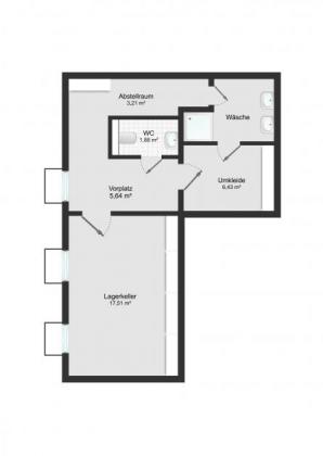 Im Untergeschoss stehen Ihnen zusätzlich ca. 32 m² zur Verfügung, die ein WC, einen Lager- und Abstellraum sowie eine Dusche umfassen.