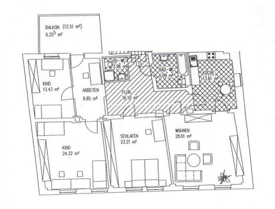 Die Wohnung mit ca. 143,84 m² Wohnfläche befindet sich im 2. OG und ist wie folgt ausgestattet: