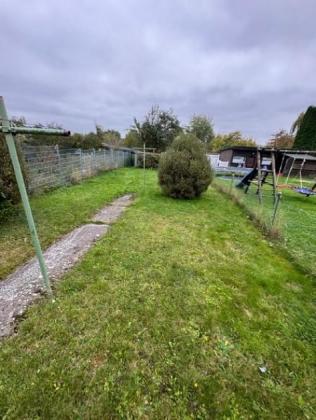 Zum Anwesen gehört außerdem ein Garten mit Garage hinter dem Haus.