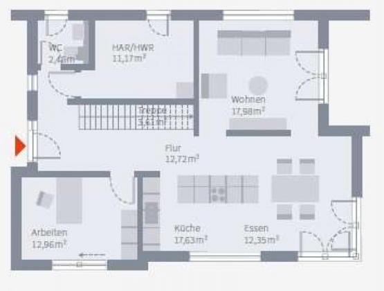 offene Treppe WC und Hauswirtschaftsraum räumlich vom