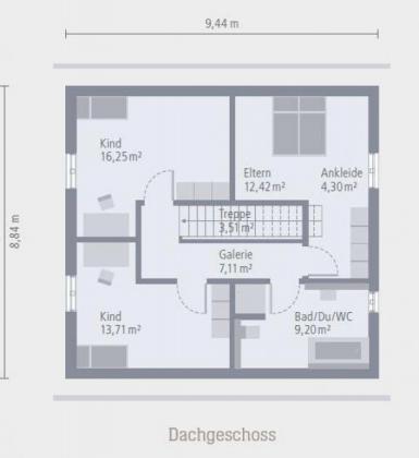 Klein, aber fein, so kommt unser "SPRING SIDE 1! daher. Unter dem eleganten Satteldach befinden sich die Schlafräume mit Bad. Sie bieten ausreichend Raum und Komfort für Singles, Paare oder Kleinfamilien. Das Erdgeschoss prägt ein großzügig gestalteter Wohn-Ess-Bereich. Aus der Küche hat man direkten Zugang zu einem großen und praktischen Hauswirtschaftsraum, der zahlreiche Lagermöglichkeiten bietet. Dielenbereich unterteilt das Erdgeschoss auf elegante Weise in Nutz- und Wohnbereich. Das Elternschlafzimmer sowie das Kinderzimmer wirken durch die Dachschrägen besonders heimelig und bieten dennoch ausreichend Raum zum Stellen von Möbeln, zum Erholen, Entspannen und Spielen. Ebenfalls auf dieser Ebene: ein großes Tageslichtbad mit Wanne, Dusche und WC. Hier lautet die Devise: maximaler Wohnkomfort auf kleinem Raum