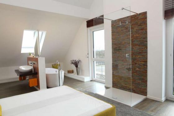 Klein, aber fein, so kommt unser "SPRING SIDE 1! daher. Unter dem eleganten Satteldach befinden sich die Schlafräume mit Bad. Sie bieten ausreichend Raum und Komfort für Singles, Paare oder Kleinfamilien. Das Erdgeschoss prägt ein großzügig gestalteter Wohn-Ess-Bereich. Aus der Küche hat man direkten Zugang zu einem großen und praktischen Hauswirtschaftsraum, der zahlreiche Lagermöglichkeiten bietet. Dielenbereich unterteilt das Erdgeschoss auf elegante Weise in Nutz- und Wohnbereich. Das Elternschlafzimmer sowie das Kinderzimmer wirken durch die Dachschrägen besonders heimelig und bieten dennoch ausreichend Raum zum Stellen von Möbeln, zum Erholen, Entspannen und Spielen. Ebenfalls auf dieser Ebene: ein großes Tageslichtbad mit Wanne, Dusche und WC. Hier lautet die Devise: maximaler Wohnkomfort auf kleinem Raum