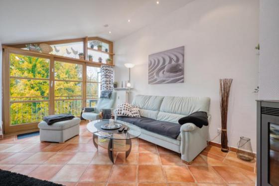 Den Mittelpunkt dieser Wohnung bildet das geräumige Wohn-/Esszimmer inklusive Kaminofen und großem Balkon sowie riesigen Sprossenfensterfronten. Weiterhin befinden sich in der Immobilie die Eingangsdiele mit Garderobe, das gut geschnittene Schlafzimmer mit angrenzendem weiteren wunderschönen Balkon nebst Sprossenfensterfronten, die gut ausgestattete offne Küche inklusive Kochinsel, das moderne Badezimmer mit Fenster sowie der praktische Abstellraum.