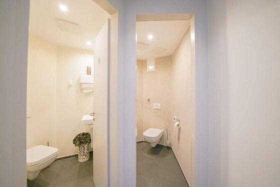 Die Bürofläche ist ist derzeit unterteilt in ein Großraumbüro mit ca. sieben Arbeistplätzen, zwei Einzelbüros, einen Konferenzraum, eine Teeküche, eine Toilettenanlage sowie Abstell-, Service- und Kopieräume. Hinzu kommt ein Eingangs- und Lopbbybereich für den Empfang. Die Aufteilung ist flexibel und kann ebenso wie die gesmate Austattung den Anforderungen des neuen Mieters angepasst werden.