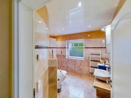 Mit ihren 9 Zimmern bietet diese Villa genügend Platz für anspruchsvolles Wohnen. Großzügige Raumaufteilungen und hohe Decken schaffen ein offenes, lichtdurchflutetes Ambiente. Besonders das Erdgeschoss begeistert mit einer luxuriösen Fußbodenheizung, die für ein behagliches Wohnklima sorgt. Die moderne Küche, die nahtlos in den offenen Wohn- und Essbereich übergeht, ist ein Highlight für alle, die Wert auf Stil und Funktionalität legen. Große Panoramafenster geben den Blick frei auf die üppige, grüne Umgebung und lassen die Natur direkt ins Haus fließen. Ein wasserführender Kamin verbindet gemütliche Wärme mit effizienter Heiztechnologie.