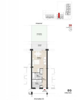 Diese 1-Zimmer-Wohnung im Erdgeschoss überzeugt mit einer durchdachten Raumaufteilung. Das Zimmer ist mit Parkett ausgestattet und sorgt für ein warmes Wohnambiente. Die Wohnung verfügt über eine Terrasse.