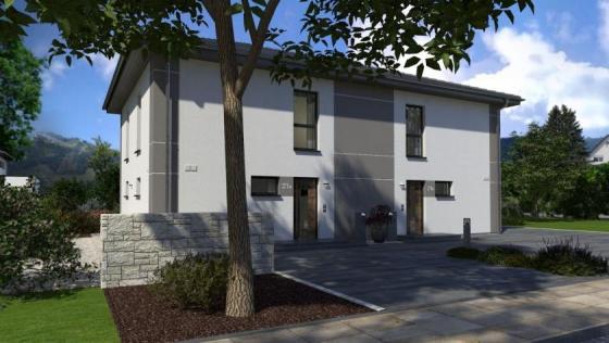 Durch seine imposante Größe, das elegante Walmdach und die großzügigen Fensterfronten strahlt unser Doppelhaus 11 eine herrschaftliche Ausstrahlung aus. Bei genauerem Hinsehen wird deutlich, dass es sich um zwei separate Wohneinheiten handelt, die jeweils etwa 142 m² Wohnfläche bieten. Im Erdgeschoss erwartet Sie ein großzügiges Wohn-Ess-Zimmer, das direkt an die Küche anschließt und viel Platz für gemütliche Fernsehabende sowie für die Bewirtung von Gästen bietet. Von hier aus gelangen Sie auch zur Terrasse und in den Garten. Große Fensterfronten sorgen für reichlich Tageslicht. Das Erdgeschoss wird ergänzt durch einen Hauswirtschaftsraum, ein Gäste-WC und eine großzügige Diele mit Garderobe. Eine Treppe führt ins Obergeschoss, wo insgesamt drei Schlafzimmer zur Verfügung stehen: ein Bereich für die Eltern sowie zwei Kinderzimmer. Das Highlight ist das über 13 m² große Badezimmer, das mit Badewanne, Dusche und WC eine wahre Wohlfühloase darstellt.