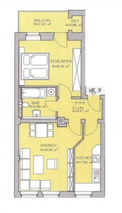 Die Wohnung Nr. 3 mit ca. 56,14 m² Wohnfläche liegt im 1. OG und teilt sich wie folgt auf: