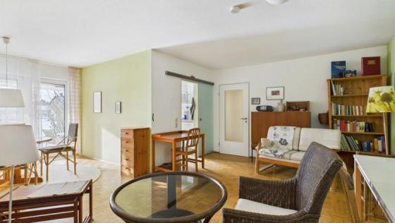 Diese gepflegte Eigentumswohnung befindet sich im Erdgeschoss eines soliden Mehrparteienhauses aus dem Jahr 1981 und überzeugt durch ihre durchdachte Raumaufteilung sowie den direkten Zugang ins Grüne. Auf rund 72 m² Wohnfläche bietet die Wohnung ein angenehmes Wohnambiente mit großzügigem Wohnbereich, separater Küche, Schlafzimmer, Badezimmer und zusätzlichem Gäste-WC. Ein besonderes Highlight ist die nicht direkt einsehbare Terrasse mit Markise, teils überdacht und mit Blick in den weitläufigen Gemeinschaftsgarten, der von der Wohnung aus direkt zugänglich ist und den Wohnraum spürbar erweitert. Die Erdgeschosslage ermöglicht komfortables, nahezu barrierefreies Wohnen und eignet sich für unterschiedliche Lebensphasen. Große Fensterflächen sorgen für helle Räume und eine freundliche Atmosphäre. Ergänzt wird das Raumangebot durch einen praktischen Abstellraum innerhalb der Wohnung. Die Immobilie präsentiert sich insgesamt in einem gepflegten Zustand und ist Teil einer gut organisierten Wohnungseigentümergemeinschaft. Hier verbindet sich ruhiges Wohnen mit hoher Alltagstauglichkeit.