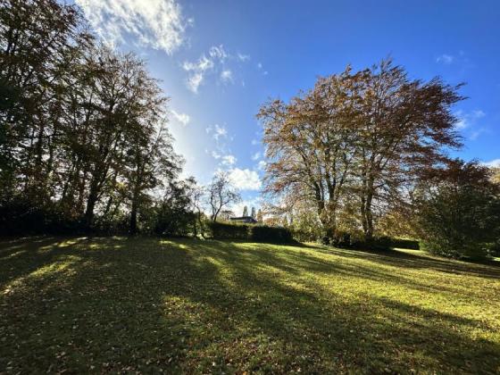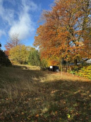 Das Grundstück ist über 60 Meter tief und weist eine leichte Hanglage auf, die eine wunderschöne Aussicht in den tiefer liegenden Wald ermöglicht – ideal für ein Einfamilienhaus.