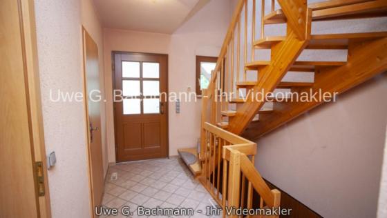 Im Erdgeschoss befindet sich ein gefliester Flur, der einen Zugang zu den weiteren Bereichen des Hauses bietet.