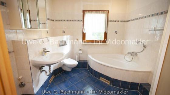 Das Wannenbad ist mit einer Eckbadewanne, einem WC und einer Dusche ausgestattet. Zusätzlich befindet sich im Erdgeschoss ein weiteres Gäste-WC.