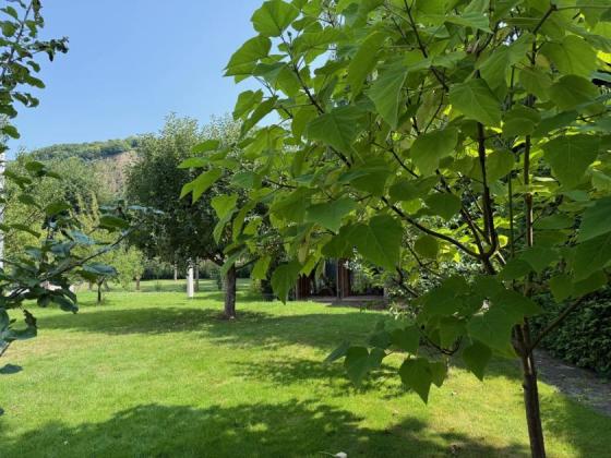 sehr schöner und großzügig angelegte Garten mit Obstbäumen und Holzunterstand.