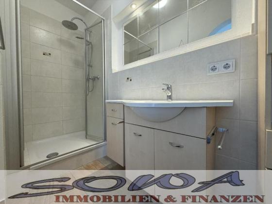 - Tageslichtbadezimmer mit Dusche und Waschbecken