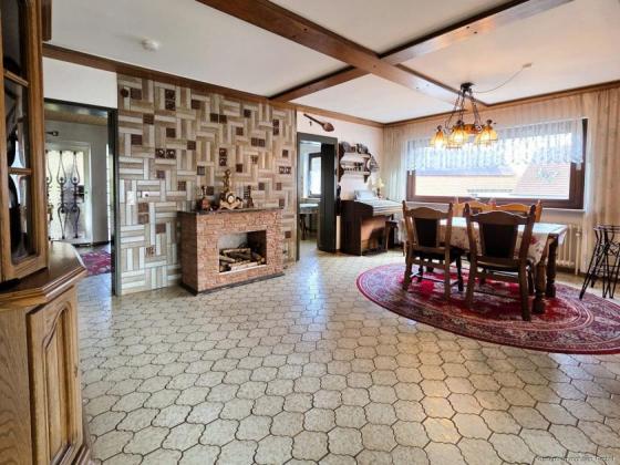 Die Immobilie befindet sich in einem gepflegten Zustand. Die Ausstattung entspricht überwiegend dem Stil der 1970er-Jahre mit zeittypischen Fliesen sowie Parkettböden in Wohn- und Schlafbereichen. Die Öl-Zentralheizung wurde im Jahr 1988 erneuert und verfügt über ein großzügiges Tankvolumen von 7.500 Litern. Der Dachboden ist aktuell nicht ausgebaut, bietet jedoch potenziellen Raum für zusätzlichen Stauraum oder künftige Ausbaumöglichkeiten. Die Zufahrt zum Grundstück erfolgt über eine gemeinsame Hofeinfahrt. Ein entsprechendes Überfahrtsrecht ist im Grundbuch eingetragen.