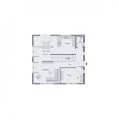Auf den ersten Blick kaum erkennbar, punktet unser Design 10 K mit einem ganz besonderen Plus: Es verfügt über einen voll ausgebauten und beheizten Keller, der nicht nur Stauraum, sondern auch die Möglichkeit zur Einrichtung beispielsweise eines Büros bietet. Zudem befindet sich hier ein großer Hauswirtschaftsraum. Gemütlich und zugleich großzügig präsentiert sich unterdessen das Erdgeschoss. Diele und Wohn-Ess-Küche verschmelzen zu einer Einheit und vermitteln ein Gefühl von Weite, das die großen Fensterfronten noch zusätzlich unterstreichen. Die in der Mitte der Etage platzierte Treppe fungiert als Raumteiler und zugleich optisches Highlight. Ebenfalls Parterre befinden sich ein Büro/Gästezimmer sowie ein Gäste-WC. Im Obergeschoss entsteht durch die Dachschrägen ein Gefühl von Behaglichkeit. Hier stehen zwei großzügig geschnittene Kinderzimmer, ein Elternschlafzimmer mit direkt angeschlossenem Ankleidebereich sowie ein großes Wohlfühlbad mit Wanne, Dusche und WC zur Verfügung.