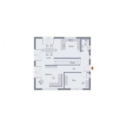 Unser Design 10 K mit einem ganz besonderen Plus: Es verfügt über einen voll ausgebauten und beheizten Keller, der neben zusätzlichem Stauraum, auch die Möglichkeit zur Einrichtung beispielsweise eines Büros oder Hobbyraums bietet. Zudem befindet sich hier ein großer Hauswirtschaftsraum. Gemütlich und dennoch großzügig präsentiert beschreiben wir das Erdgeschoss. Diele und Wohn-Ess-Küche verschmelzen zu einer Einheit und vermitteln ein Gefühl von Weite, das von den großen Fensterfronten noch zusätzlich unterstrichen wird. Die in der Mitte der Etage platzierte Treppe fungiert als Raumteiler und ist zugleich ein optisches Design-Highlight. Ebenfalls im Erdgeschoss befinden sich ein Büro/Gästezimmer sowie ein Gäste-WC. Im Obergeschoss stehen zwei großzügig geschnittene Kinderzimmer, ein Elternschlafzimmer mit angrenzendem Ankleidebereich sowie ein großes Badezimmer mit Wanne, Dusche und WC zur Verfügung.