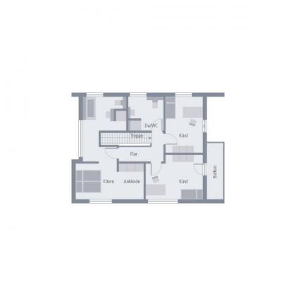 Klassisch und stilvoll präsentiert sich das 2-geschossige Einfamilienhaus Design 13. Unter dem Satteldach vereinen sich moderne Architektur und höchster Wohnkomfort. Im Entrée trennt die offene Treppe WC und HWR räumlich vom restlichen Wohnbereich ab. Auch das Büro findet hier seinen Platz. Der offene und helle Koch- und Wohnbereich wird durch ein freistehendes Wandelement gekonnt unterbrochen. Vom Wohn- und Esszimmer geht es zur großflächigen Eckterrasse. Im Obergeschoss ist die Elternsuite mit Bad und Ankleide dank kluger Raumaufteilung geschickt von den Kinderzimmern mit eigenem Dusch-WC abgegrenzt. Der Dachvorsprung an der Giebelseite setzt nicht nur gestalterische Akzente, sondern sorgt auch für einen geschützten Aufenthalt im Freien.