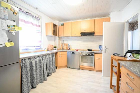 Über einen Weg durch den Vorgarten erreichen Sie den Hauseingang. Der zentrale Flur der Erdgeschosswohnung führt Sie direkt in die Küche mit anschließendem Essbereich. Von hier aus gelangen Sie auf die überdachte Terrasse, die ausreichend Platz für gemütliche Sitzgelegenheiten bietet.