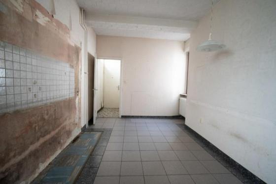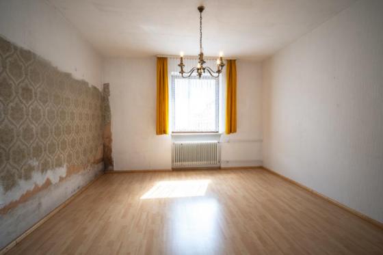 Das Vorderhaus erstreckt sich über mehrere Etagen und bietet verschiedene Nutzungsmöglichkeiten. Im Erdgeschoss befinden sich ein Schlafzimmer, ein Wohnzimmer sowie ein Esszimmer, das auch als zusätzliches Schlafzimmer genutzt werden kann. Außerdem gibt es eine Küche, ein Badezimmer und einen Flur, der alle Räume miteinander verbindet. Vom Flur, direkt neben dem Badezimmer, gelangt man in die Waschküche des angrenzenden Nebengebäudes.