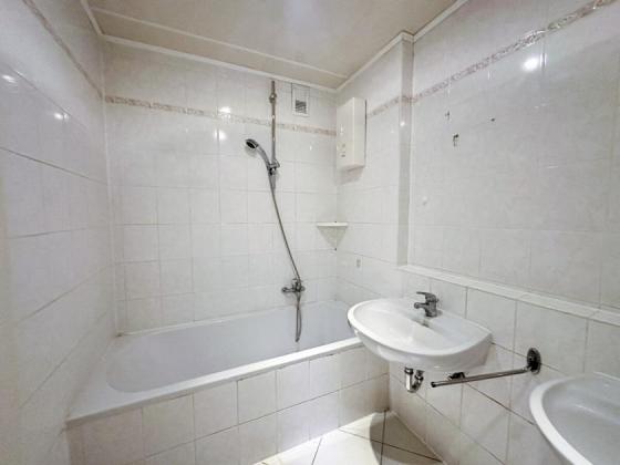 Die Wohnung verfügt über einen geräumigen Wohnbereich mit direktem Zugang zur eigenen sonnigen Loggia. Direkt neben dem Wohnzimmer befindet sich die Küche und der großzügige Dielenbereich lässt sich ideal als Essplatz nutzen. Darüber hinaus gibt es drei separate Schlafzimmer sowie ein weiß gefliestes Badezimmer mit Badewanne, zwei Waschbecken, Handtuchheizkörper und Anschluss für ihre Waschmaschine. Außerdem gibt es ein separates WC mit Waschbecken.