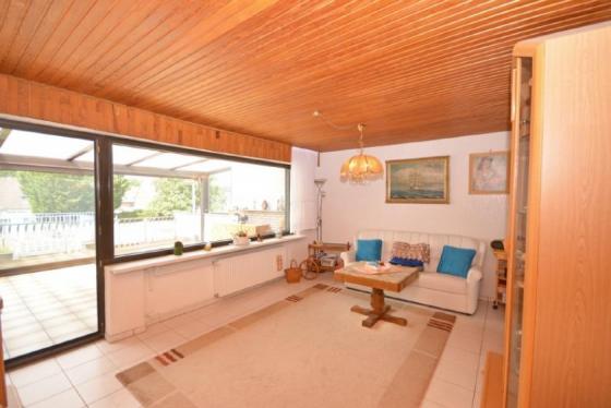 Im Erdgeschoss befindet sich eine zentrale Diele, die in alle weiteren Räume führt. Das großzügige Wohn- und Esszimmer bietet viel Platz für Familienleben und Geselligkeit. Sowohl vom Wohnbereich als auch vom angrenzenden Schlafzimmer aus gelangt man auf die Terrasse und in den gepflegten Garten. Die Küche ist separat angelegt und verfügt über ausreichend Platz für eine Essecke. Das Tageslichtbad ist mit einer Badewanne sowie einer Dusche ausgestattet.