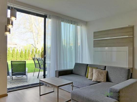 ### Please note the availability date! Bitte das Verfügbarkeitsdatum beachten! ### modern gestaltetes Apartment mit WLAN, Parkettböden, Fußbodenheizung, Terrasse und eigenem Garten (ca 62m²); großes Wohnzimmer mit großer Couch, Esstisch und TV; moderne Küche mit Esstisch; Schlafzimmer mit Doppelbett, TV und Blick in den Garten; vorderes Bad mit Dusche, WC und Waschmaschine; hinteres Bad mit Doppelwaschtisch, WC und Whirlpool-Eckbadewanne; eigene Sauna; großer Eingangflur mit Garderobe; Aufzug im Haus; diverse Service-Leistungen inklusive; Tiefgaragenstellplatz auf Wunsch anmietbar; Pauschalmiete 2.530,00 Euro ab einer Mietdauer von 6 Monaten; wird. an max. 2 Personen vermietet; Kaution 4.000,00 Euro; Endreinigung Mietersache; Mindestmietdauer 2 Monate; Pflichtangaben zum Energieausweis: Energieausweis gültig bis: 06.09.2026; Baujahr Gebäude: 2016; Energieausweis: nach Bedarf; Energieverbrauch: 78.0 kWh/(m²a); Energieeffizienzklasse: C; Primärer Energieträger: Nah-/Fernwärme, KWK + fos; Hilfsenergie Strom