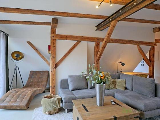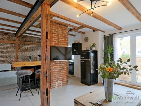 ### Please note the availability date! Bitte das Verfügbarkeitsdatum beachten! ### Neu ausgebautes und neu möbliertes Apartment in Kassel-West, WLAN inklusive; großer Wohnraum mit offenen Balken, große Wohnlandschaft, Liege, möblierter Balkon, Arbeitstisch, moderne Küche mit allen Geräten und Tresen, separater Esstisch; Schlafzimmer mit modernen Bett, Sideboard und Kleiderschrank; Bad mit Dusche, Wanne, WC und Waschmaschine; Pauschalmiete 1.850,00 Euro bei max. 2 Personen; Kaution 2.300,00 Euro; Endreinigung Mietersache; Mindestmietdauer 2 Monate; Pflichtangaben zum Energieausweis: Entfällt, Kulturdenkmal gemäß Hessisches Denkmalschutzgesetz (HDSchG)