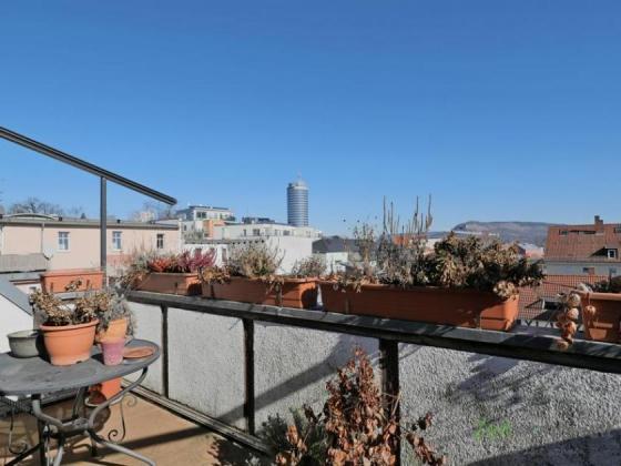 ### Please note the availability date! Bitte das Verfügbarkeitsdatum beachten! ### möblierte Wohnung nahe der Innenstadt, ruhige Altbauwohnung "in der zweiten Reihe" mit Reinigungsservice, WLAN, fester PKW-Stellplatz; Klimaanlage, Waschmaschine und Trockner; großes Wohnzimmer mit großem Esstisch, offener Eckküche mit Tresen, Couch, Sessel und TV; sonniger Dachbalkon mit Blick auf Innenstadt und Jenaer Berge; Schlafzimmer mit Doppelbett und Kleiderschrank (leider kein Foto); drittes Zimmer mit Bett, Schreibtisch und Schränken (kein Foto); Tageslichtbad mit Wanne und WC; separates Gäste-WC; die angegebene Miete von 1.650,00 Euro (bei 2 Personen, wird nur an 1-2 Personen vermietet) setzt sich zusammen aus Pauschalmiete 1.400,00 Euro und NK-Vorauszahlung 250,00 Euro für Wasser, Strom und Heizgas nach Verbrauch; Kaution 2.000,00 Euro; Mindestmietdauer 3 Monate; Pflichtangaben zum Energieausweis: Entfällt, Kulturdenkmal gemäß Thüringer Denkmalschutzgesetz (ThürDSchG)