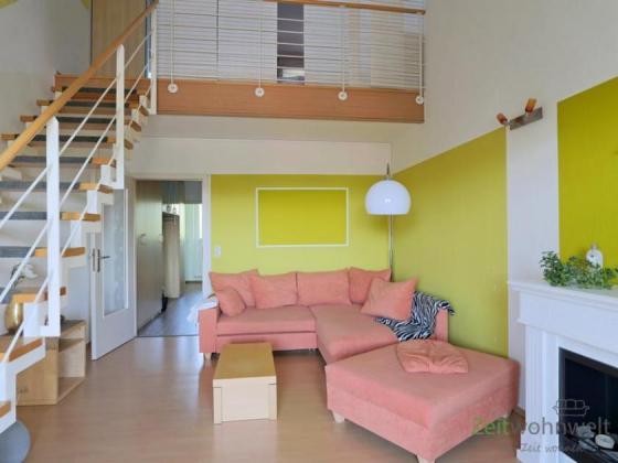### Please note the availability date! Bitte das Verfügbarkeitsdatum beachten! ### moderne Maissonette-Wohnung mit Tiefgarage und Aufzug; großer Wohnraum mit Eckcouch, Deko-Kamin und TV; großer überdachter Balkon; Innentreppe zum Dachbereich mit Doppelbett und Kleiderschrank; separate Küche mit EBK und Esstisch; Bad mit Wanne und WC; Wohnungsflur mit Garderobe; keine Waschmaschine vorhanden, kann jedoch mieterseits aufgestellt werden; vermieterseits ist kein Internet vorhanden; Pauschalmiete 660,00 Euro bei 1 Person; bei max. 2 Personen 60,00 Euro Aufpreis; ein TG-Stellplatz im Haus kann für 40,00 Euro angemietet werden; Kaution 800,00 Euro; Mindestmietdauer 3 Monate; Endreinigung Mietersache; Pflichtangaben zum Energieausweis: Energieausweis gültig bis: 07.11.2027; Baujahr Gebäude: 1996; Energieausweis: nach Verbrauch; Energieverbrauch: 87.0 kWh/(m²a); Energieeffizienzklasse: C; Primärer Energieträger: Gas