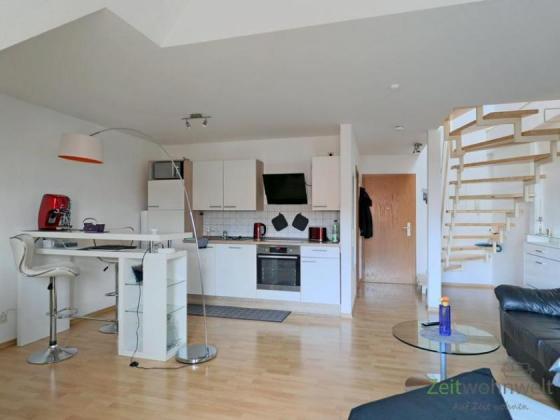 ### Please note the availability date! Bitte das Verfügbarkeitsdatum beachten! ### neu und allergikergerecht möbliertes 2-Zimmer-Maisonette-Apartment, ruhige, zentrumsnahe Lage direkt an einem Seitenarm der Gera; 4. Obergeschoss mit Aufzug, WLAN inkl.; großes Wohnzimmer mit Sofa, Sessel; kleinem Schreibtisch (mit Monitor!) runder Esstisch; TV; offener Küchenbereich mit EBK und Tresen-Esstisch mit Barhocker; Bad mit Wanne WC und Waschmaschine; Innentreppe ins Dachgeschoss; Schlafzimmer mit Boxspringbett, Koffer-Kommode und verdunkelbaren Dachfenstern: ein Kleiderschrank und Spiegel sind im oberen Flur; Pauschalmiete 1.150,00 Euro (bei max. 1 Person); Kaution 2.000,00 Euro; Fahrradverleih nach Absprache möglich; Mindestmietdauer 3 Monate; Endreinigung Mietersache; Pflichtangaben zum Energieausweis: Energieausweis gültig bis: 23.02.2030; Baujahr Gebäude: 1918; Energieausweis: nach Verbrauch; Energieverbrauch: 112.0 kWh/(m²a); Energieeffizienzklasse: D; Primärer Energieträger: L-Gas/Leichtes Erdgas