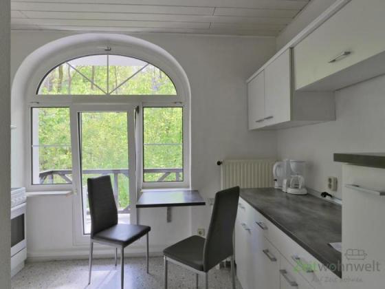 ### Please note the availability date! Bitte das Verfügbarkeitsdatum beachten! ### neu möblierte Wohnung in Jena-West; WLAN inklusive; helles Wohnzimmer mit grünem Sofa und Sessel; Schlafzimmer mit Einzelbett, Kleiderschrank und begehbarem Kleiderschrank; Küche mit EBK, Esstisch und Ausgang zum überdachten Balkon auf der grünen Gebäuderückseite; Bad mit Dusche, WC und Waschmaschine; separates WC; Pauschalmiete 890,00 Euro; Kaution 1.200,00 Euro; Vermietung nur an max. 1 Person; Nachweis einer Haftpflicht-VS erforderlich; Mindestmietdauer 3 Monate; Pflichtangaben zum Energieausweis: Energieausweis gültig bis: 10.04.2034; Baujahr Gebäude: 1911; Energieausweis: nach Verbrauch; Energieverbrauch: 72.6 kWh/(m²a); Energieeffizienzklasse: B; Primärer Energieträger: Erdgas H, Brennholz