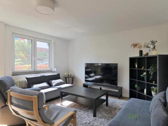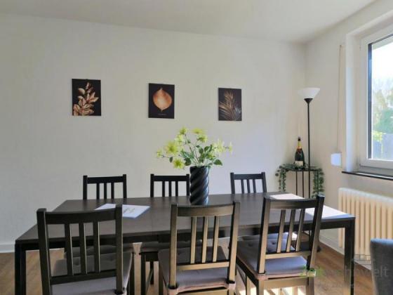 ### Please note the availability date! Bitte das Verfügbarkeitsdatum beachten! ### möblierte 3-Zimmer-Wohnung in ruhiger grüner Wohnlage am Stadtrand; WLAN inklusive; großes Wohnzimmer mit breiter Couch, Sesseln, Regalwand, Sideboard und TV, großer Esstisch; großes Schlafzimmer mit Doppelbett, Kommode und Kleiderschrank; kleines Schlafzimmer mit breitem Bett, Regal und Sessel; überdachter Balkon mit Blick zum Garten; separate Küche mit EBK; Bad mit Dusche, Wanne und WC; großer Wohnungsflur mit Garderobe und Kleiderschrank; Waschmaschine vorhanden; Abstellpkammer; Pauschalmiete 2.060,00 Euro; Vermietung an max. 4 Personen; Kaution 2.500,00 Euro; Endreinigung Mietersache; Mindestmietdauer 3 Monate; Pflichtangaben zum Energieausweis: Energieausweis gültig bis: 19.04.2031; Baujahr Gebäude: 1962; Energieausweis: nach Verbrauch; Energieverbrauch: 121.0 kWh/(m²a); Energieeffizienzklasse: D; Primärer Energieträger: H-Gas/schweres Erdgas