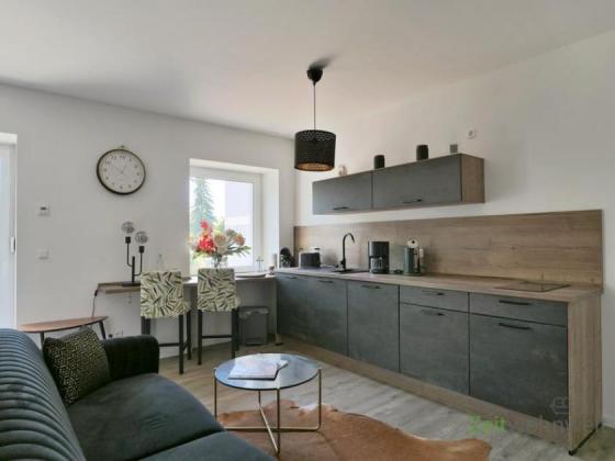 ### Please note the availability date! Bitte das Verfügbarkeitsdatum beachten! ### großes möbliertes Luxusapartment mit Balkon im Hochparterre; WLAN, Aufzug und Waschmaschine vorhanden; ein großer heller Wohnraum is unterteilt mit einem massivem Raumteiler; vorderer Bereich mit komfortabler Einbauküche mit Tresen, breites Sofa; hinterer Bereich mit Doppelbett, Wand-TV, Kommode, Sessel, modernem Schrankregal; Ausgang zum überdachten Balkon; Bad mit Dusche und WC; Wohnungsflur mit Garderobe; Pauschalmiete 990,00 Euro (bei 1 Person); Kaution 1.600,00 Euro; Endreinigung 100,00 Euro; Mindestmietdauer 3 Monate; Pflichtangaben zum Energieausweis: Energieausweis gültig bis: 22.05.2032; Baujahr Gebäude: 2022; Energieausweis: nach Bedarf; Energieverbrauch: 15.7 kWh/(m²a); Energieeffizienzklasse: A+; Primärer Energieträger: Strom