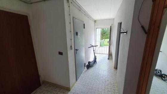 Rechts neben den zwei geräumigen Garagen mit PKW-Stellplatz liegt der überdachte Hauszugang mit dem Treppenflur, welcher direkt in das Gästezimmer sowie in zwei Kellerräume und den Heizraum führt. Der Kellerflur erschließt eine Garage, die provisorische Dusche mit Sauna, Waschmaschinenplatz, ein separates WC sowie den Nebenzugang zum Gartengrundstück.