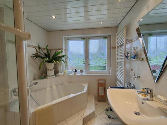 - Tageslichtbad mit Eckbadewanne, Dusche und Gäste-WC