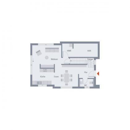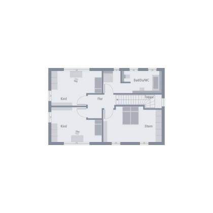 Geradlinige und schnörkellose Architektur prägt die zweigeschossige Bauhausvilla mit leichtem Fassadenrücksprung. Stilgetreu: das Flachdach und die klare Formgebung. Der große Wohn- und Kochbereich im Erdgeschoss überzeugt mit viel Freiraum und Helligkeit. Das zwischen Küche und Wohnzimmer durchdacht integrierte Wandelement sorgt für eine optische Abtrennung und ermöglicht eine moderne Raumplanung. Im Hauswirtschaftsraum findet nicht nur modernste Haustechnik ihren Platz. In der oberen Etage bieten zwei identische Kinderzimmer eine faire Raumaufteilung. Das Badezimmer mit abgetrennter Duschecke und das große Elternzimmer runden das Raumangebot ab.