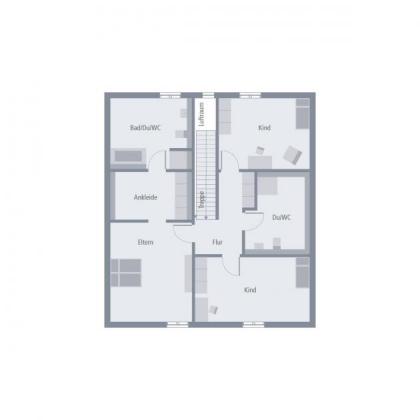 Funktionell, modern und bis ins kleinste Detail durchdacht. Das ist das Design 19.2. Ein Carport sorgt dafür, dass Bewohner und Gäste immer trockenen Fußes in die Diele gelangen und von dort in den großzügig geschnittenen Essbereich mit direkt angeschlossener Küche. Ein besonderes Highlight ist der Hauswirtschaftsraum, der genug Raum für die Lagerung von Lebensmitteln und für das Anschließen verschiedener Elektrogeräte bietet. Optisch ein wenig vom Essbereich abgetrennt: das Wohnzimmer. Mehr als 25 m² warten hier darauf, in eine Wohlfühloase für die ganze Familie verwandelt zu werden. Abgerundet wird das Raumangebot im Erdgeschoss durch ein Gäste-WC mit integrierter Dusche. Die erste Etage ist optisch in einen Eltern- und einen Kinderbereich unterteilt. Auf der einen Seite: das Reich der Großen mit einem Schlaf- und Ankleidezimmer, an das sich direkt ein Bad anschließt. Auf der anderen Seite: zwei Kinderzimmer, die durch ein gemeinsames Badezimmer abgetrennt werden.