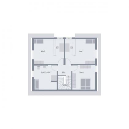 Der Lieblingsplatz der Stadtvilla 12 ist schnell ausgemacht: im Obergeschoss, direkt im Bereich des Erkers, der mit zwei großen Fenstern punktet. Hier ist der Rückzugs-, Lern- und Spielort für die beiden Kinder, schließlich erstreckt sich der Erker über beide Zimmer. Und er ist zugleich zentrales Gestaltungselement, denn er durchbricht das Walmdach auf architektonisch ansprechende Weise. Apropos Walmdach: Diese Dachkonstruktion sorgt dafür, dass das obere Stockwerk nicht als Vollgeschoss zählt (Hamburger Eingeschossigkeit) und die Stadtvilla auch dort errichtet werden kann, wo nur eine eingeschossige Bauweise erlaubt ist - und das, ohne dass Sie auf Komfort und Raum verzichten müssen. Mittelpunkt des Hauses ist der mehr als 42 m² große Wohn-Ess-Kochbereich mit direktem Zugang zum Garten. Abgerundet wird das Raumangebot Parterre durch einen großen HWR, Gäste-WC und Abstellraum. Im Obergeschoss steht nicht nur zwei Kindern ihr Lieblingsort zur Verfügung. Auch die Eltern haben ausreichend Platz zum Schlafen und Träumen. Ein weiteres Highlight: das fast 15 Quadratmeter große Bad.
