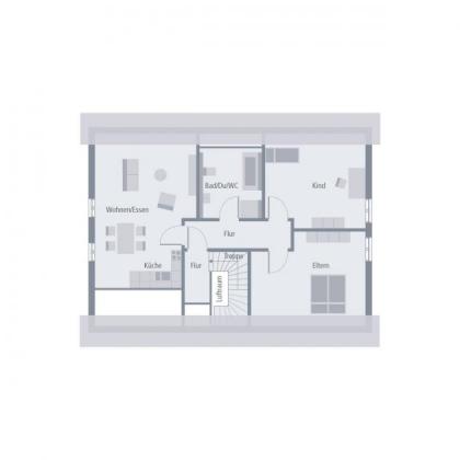 Der Satteldachklassiker ist in zwei abgeschlossene Wohneinheiten auf jeweils einer Etage aufgeteilt. Generationen vereint unter einem Dach oder Vermietung einer Wohnung: alles ist möglich. Beide Geschosse bieten modernes Ambiente und Raum für junge Familien, Singles oder Paare. Die Wohn-/Ess- und Küchenbereiche überzeugen, wie bei allen OKAL-Häusern, durch offene und großzügige Gestaltung. Die Erdgeschosswohnung punktet mit direktem Zugang in den Außenbereich. Doch auch unter dem Dach lässt es sich gut leben. OKAL-Standard: 2,80 m Raumhöhe und elektrische Aluminiumrollläden im ganzen Haus.