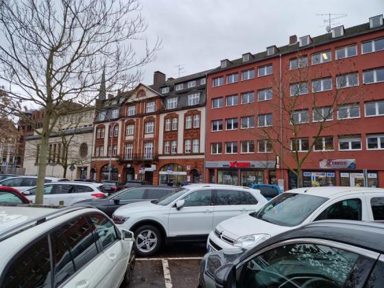 Mitten in der Stadt mit guten Parkmöglichkeiten vor dem Haus.